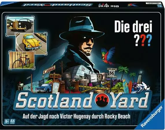 Es gibt eine Variante von dem Klassiker unter dem Brettspielen „Scotland Yard“ zu den Drei Fragezeichen. Leider ist es mehr oder minder das Originalspiel mit optischen Änderungen zu Rocky Beach statt London.
